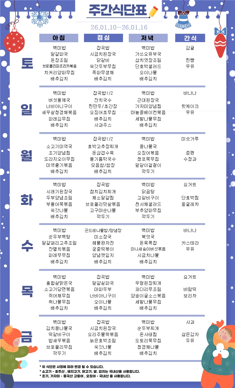 26.01.10~26.01.16 ÁÖ°£½Ä´ÜÇ¥