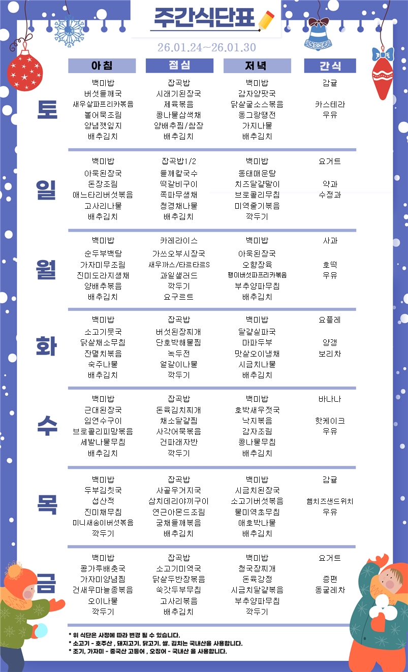 26.01.24~26.01.30 ÁÖ°£½Ä´ÜÇ¥