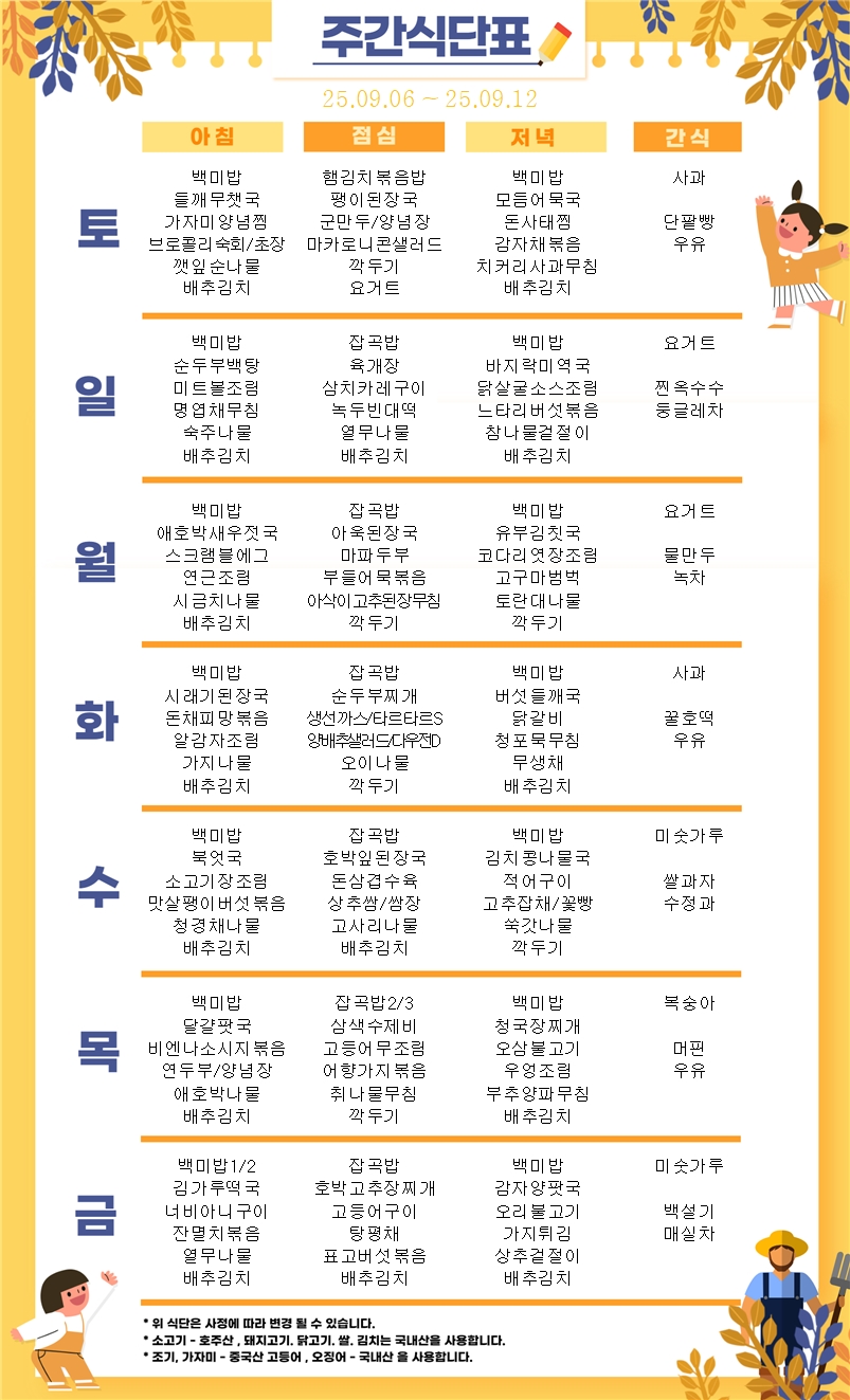 25.09.06~25.09.12 ÁÖ°£½Ä´ÜÇ¥