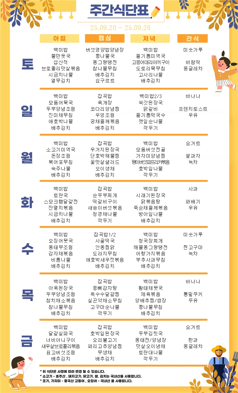 25.09.20~25.09.26 ÁÖ°£½Ä´ÜÇ¥