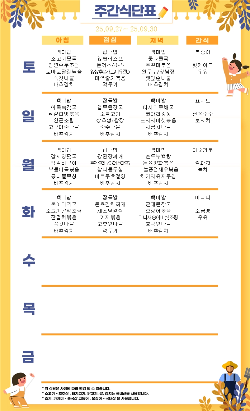 25.09.27~25.09.30 ÁÖ°£½Ä´ÜÇ¥