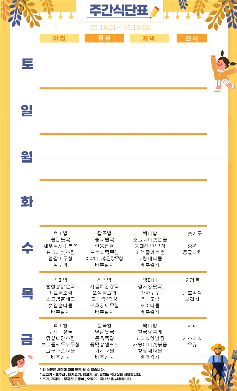25.10.01~25.10.03 ÁÖ°£½Ä´ÜÇ¥