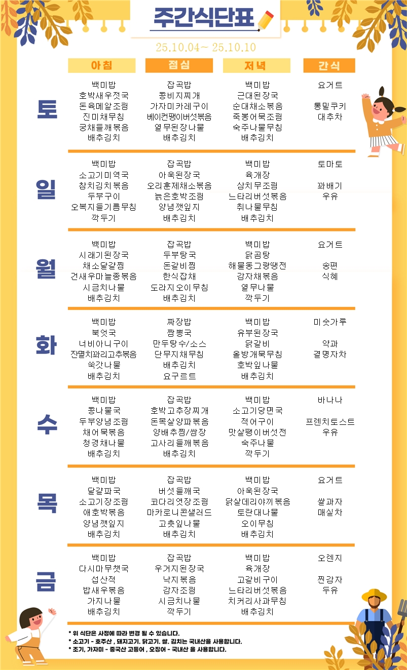 25.10.04~25.10.10 ÁÖ°£½Ä´ÜÇ¥