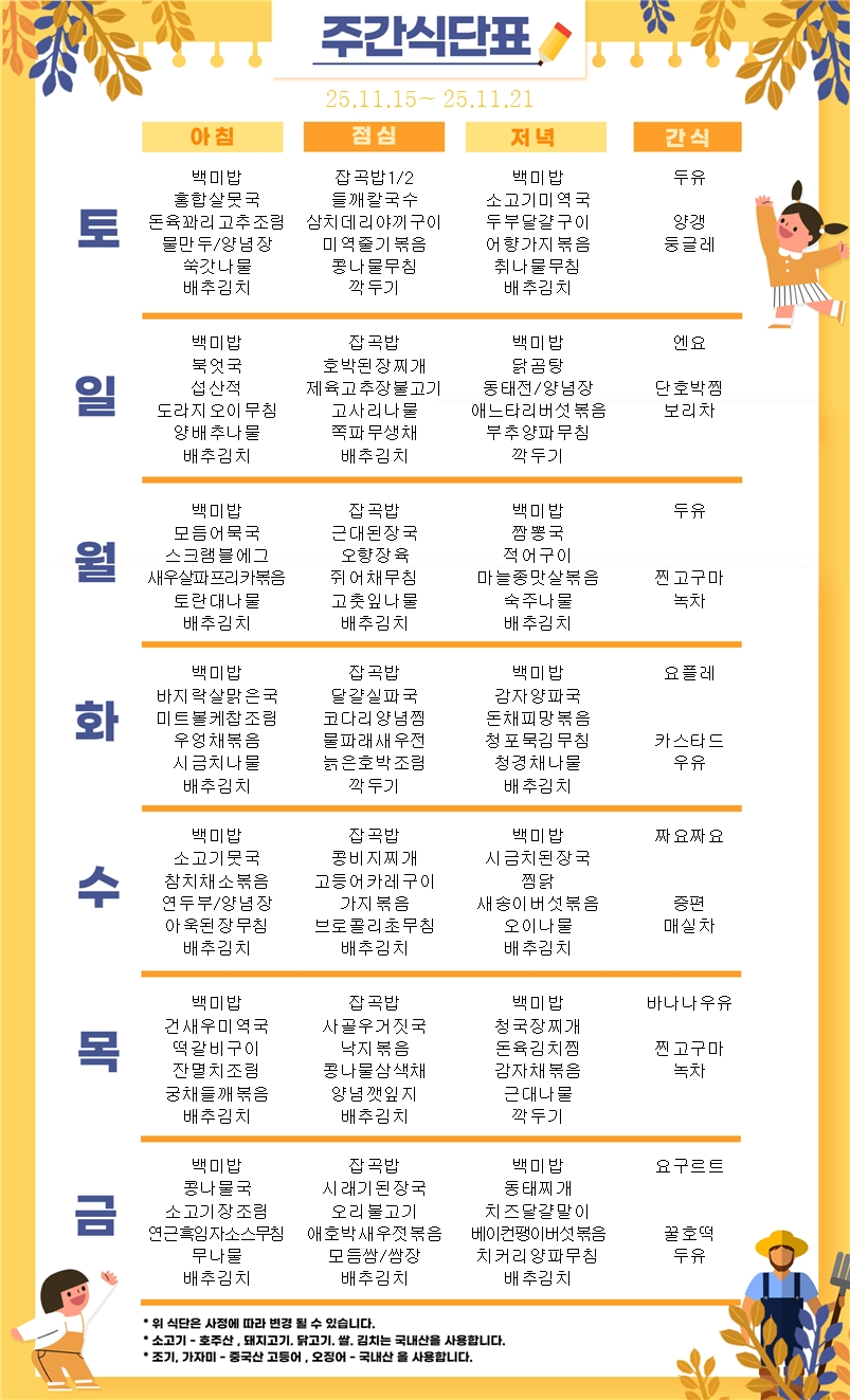 25.11.15~25.11.21 ÁÖ°£½Ä´ÜÇ¥