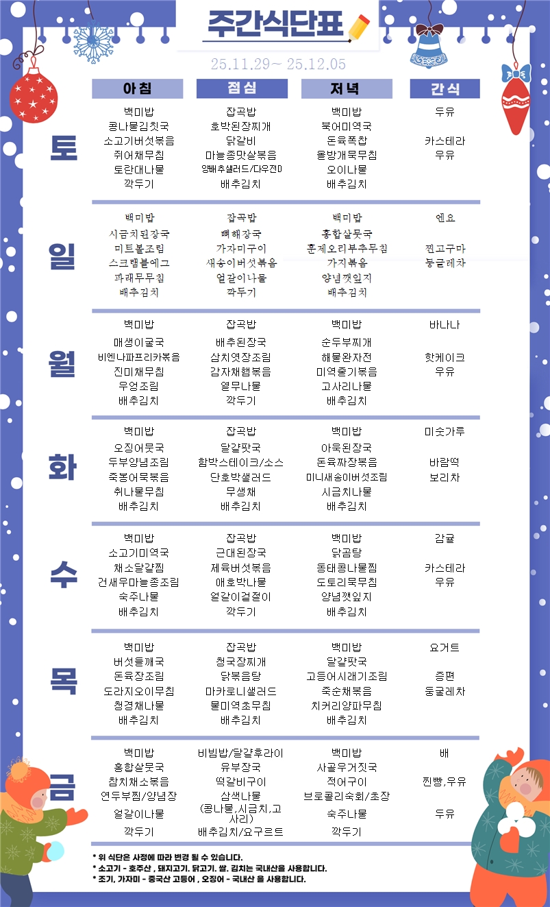 25.11.29~25.12.05 ÁÖ°£½Ä´ÜÇ¥