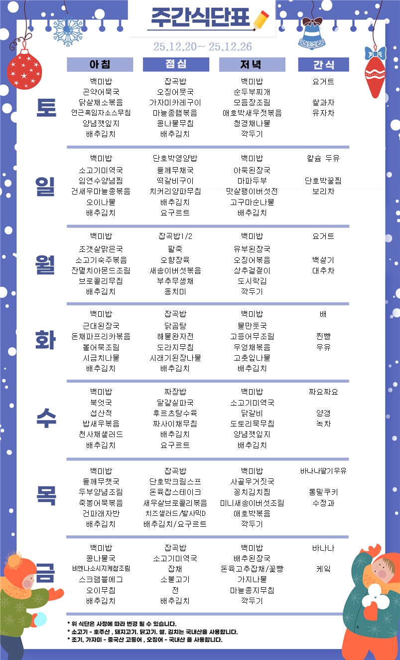 25.12.20~25.12.26 ÁÖ°£½Ä´ÜÇ¥