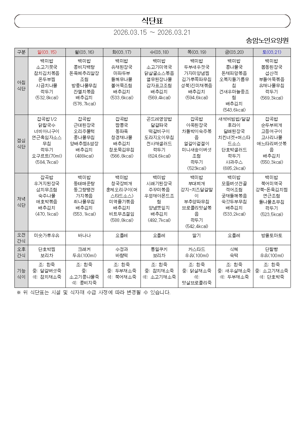 26.03.15~26.03.21 ÁÖ°£½Ä´ÜÇ¥
